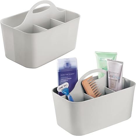 Amazon De Mdesign 2er Set Badezimmer Korb Mit Griff Als Kosmetik Organizer Kuchen Aufbewahrungsbox Oder Handtuchhalter Kleine Bad Box Aus Robustem Kunststoff Hellgrau