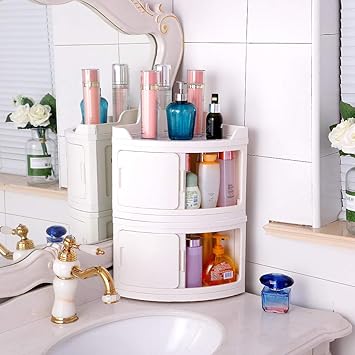 Baoyouni 2 Schicht Stapelbare Aufbewahrungsbox Plastik Aufbewahrungsboxen Mit Deckel Eckaufbewahrungsbox Fur Badezimmer Kuche Schlafzimmer Wc 49 X 27 X 30cm Klein Elfenbeinfarben Amazon De Kuche Haushalt