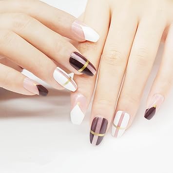 Jindin 24 Blatt Kunstnagel Fur Frauen Kurze Motive Acryl Kunstnagel Kunstnagel Volldeckend Dekore Hellgrau Und Rosa Amazon De Beauty