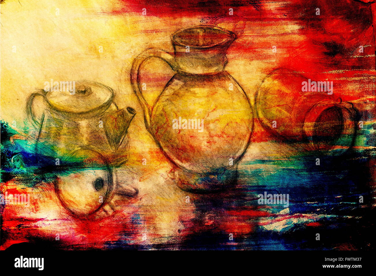 Stillleben Zeichnen Original Hand Auf Papier Zu Zeichnen Kanne Krug Trichter Und Dosen Stockfotografie Alamy