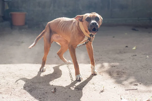 Hund American Pitbull Terrier Hund Bellt Wild Bester Freund Braun Biss Stock Photo 219207200