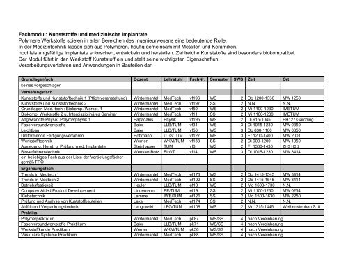 Facherliste Pdf Lehrstuhl Fur Medizintechnik Tum