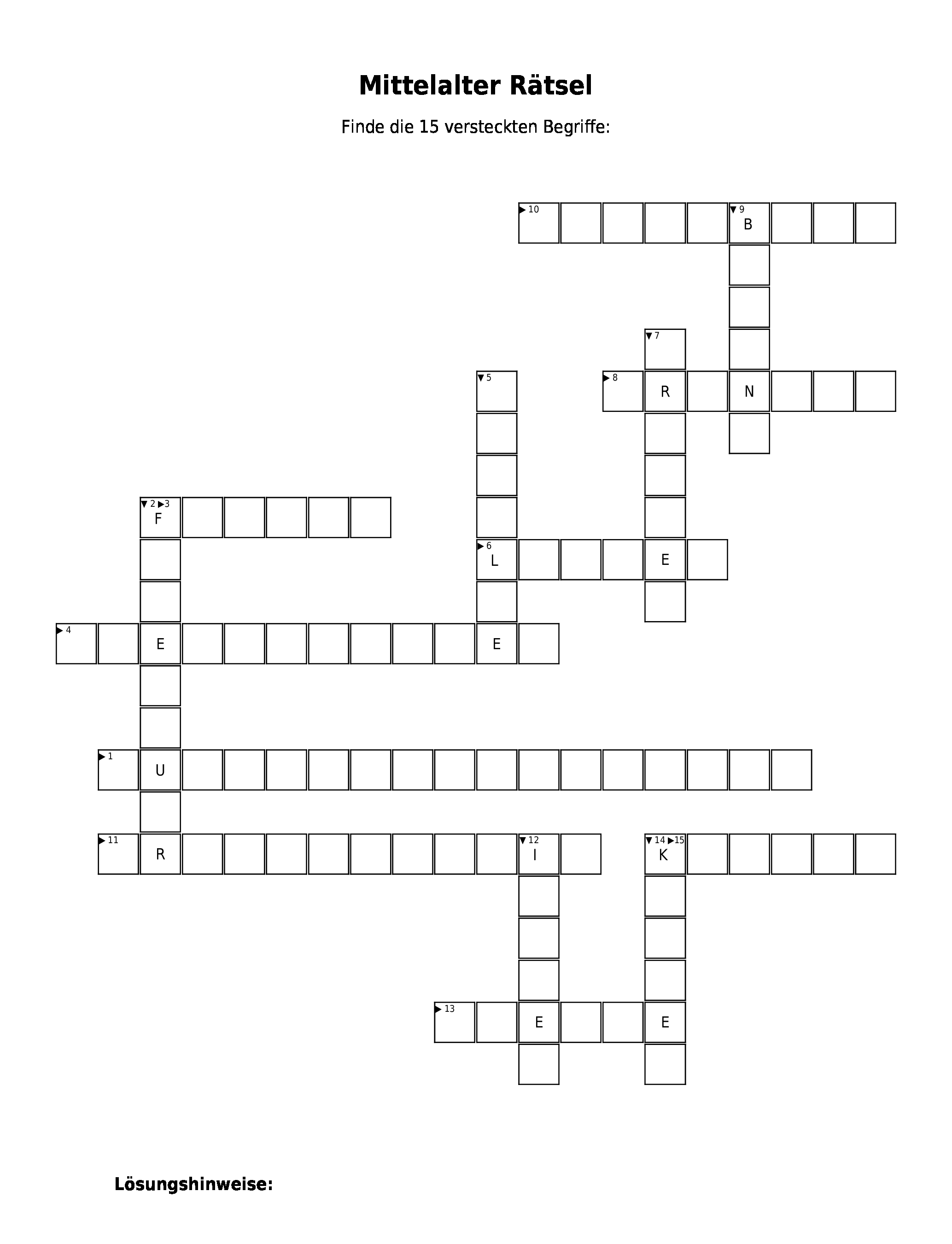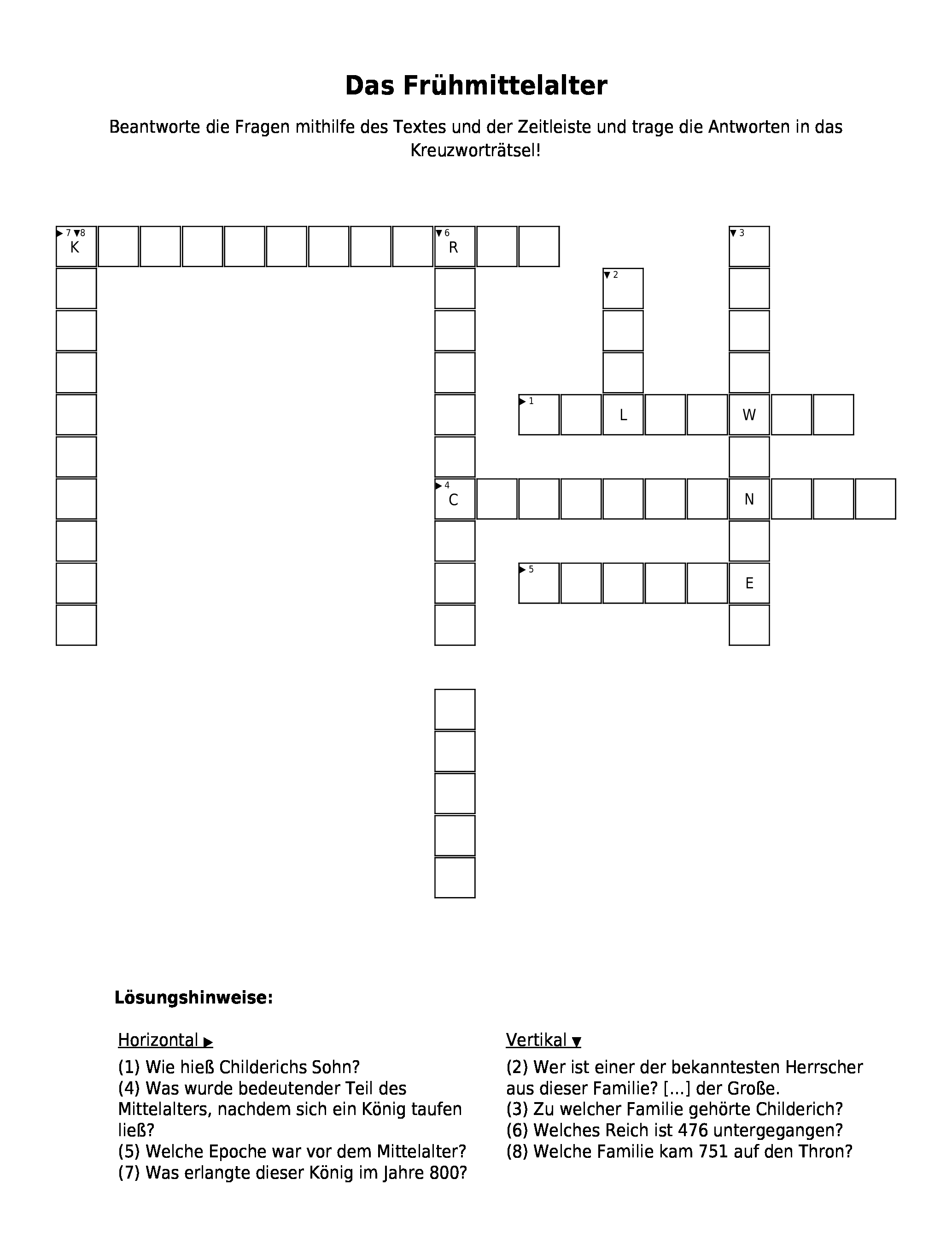 Kreuzwortratsel Geschichte Mittelalter Unterrichtsmaterial Zum Download