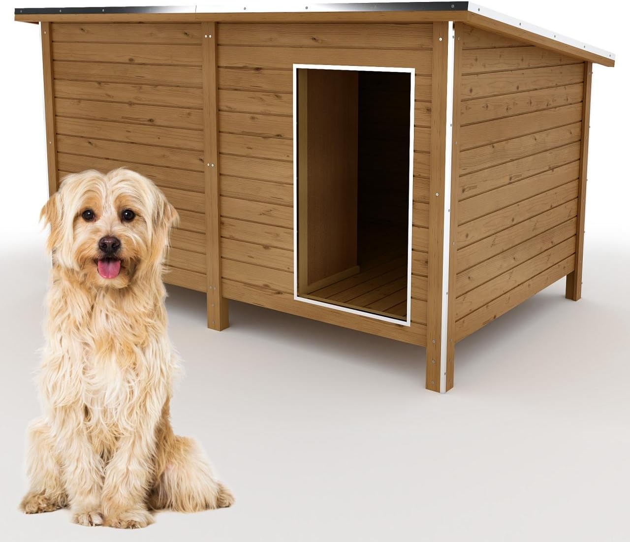 Happypet Hundehutte Xl Hundehutte In L Format Echtholz Hutte Dk150 2 Wetterfest Isoliert Mit Windfang Outdoor Hundehaus Fur Grosse Hunde Platz Fur Hundebett Mit Hohen Standbeine Aus Massivholz 150 X 95 X 95 Cm