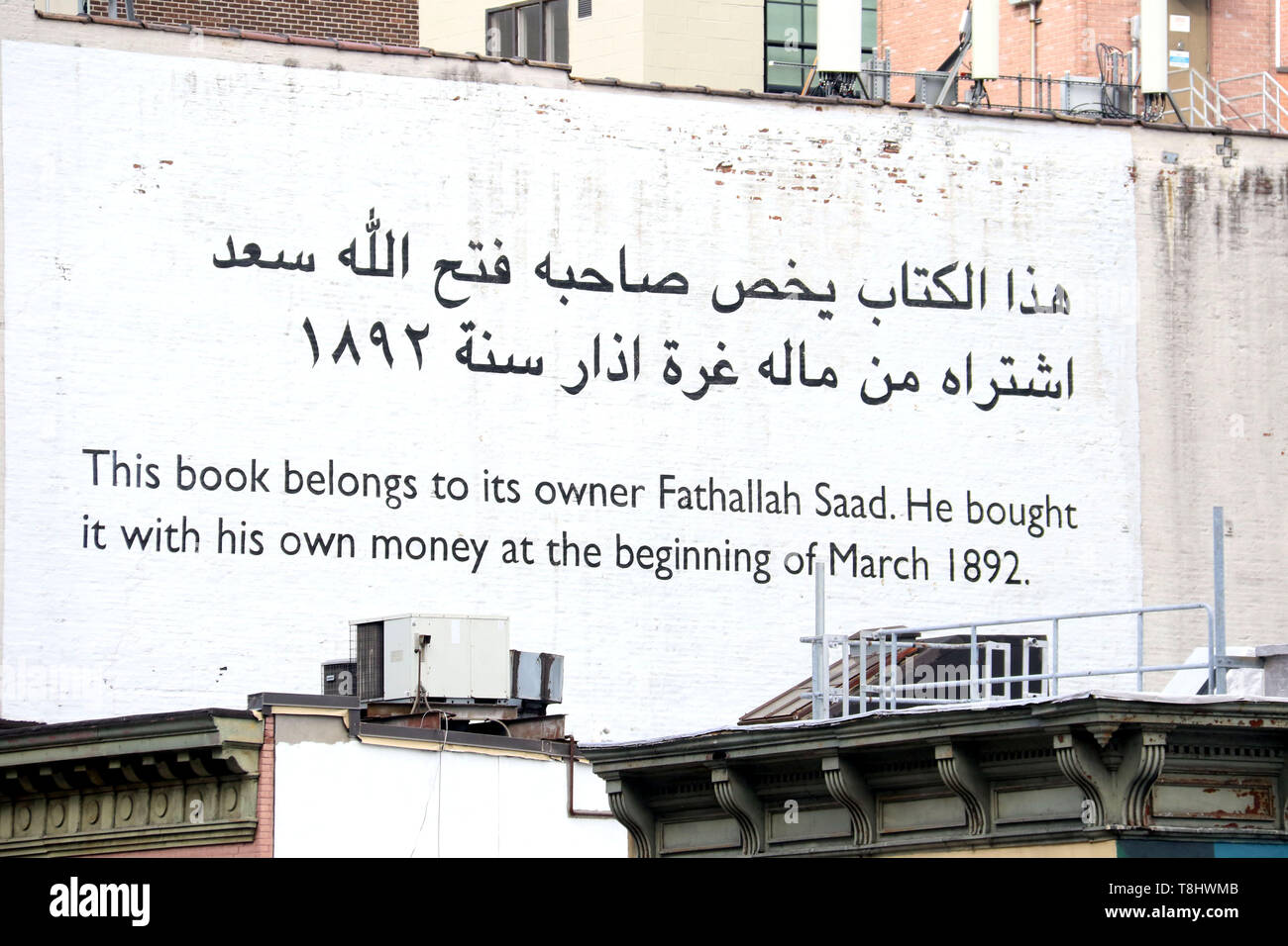 New York City New York Usa 13 Mai 2019 L Der Palastinensischen Kunstlerin Emily Jacir Wandbild Dieses Buch An Seinen Besitzer Fathallah Saad Gehort Er Kaufte Es Mit Seinem Eigenen Geld Anfang
