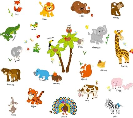 Amazon De Jyyc Kinderzimmer Dekoration Niedlichen Cartoon Tier Baby Fruherziehung Englisch Lernen