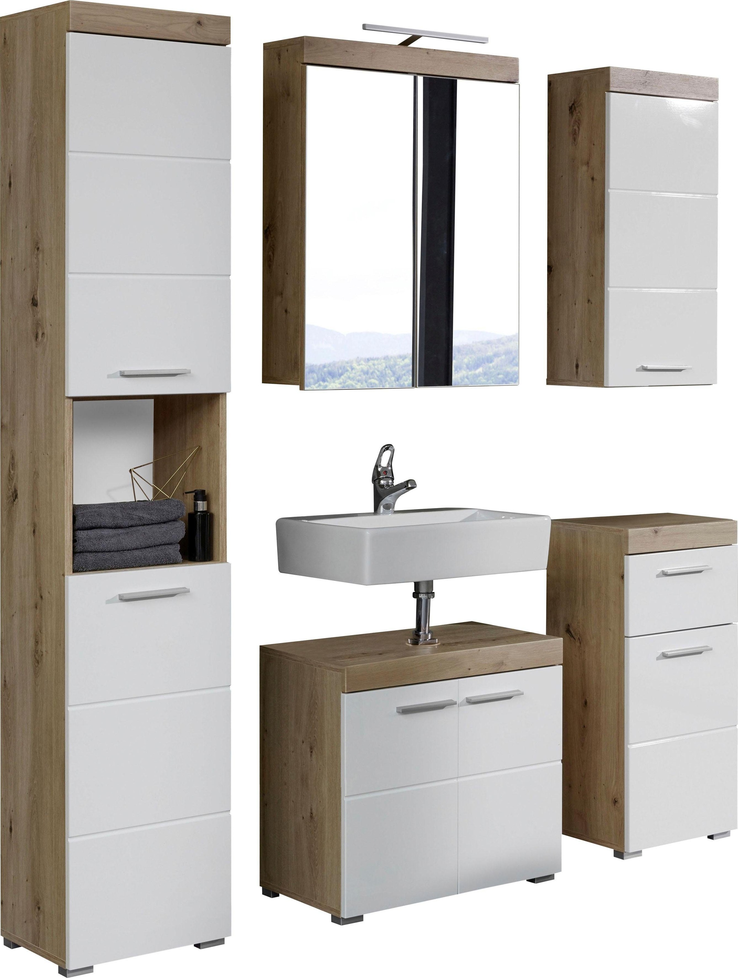 Trendteam Badmobel Set Amanda Set 5 St Mit Spiegelschrank Inkl Led Beleuchtung Hoch Waschbeckenunter Hange Und Unterschrank Wechselbare Turanschlage Mdf Fronten In Hochglanz Oder Holzoptik Gunstig Kaufen Ackermann Ch