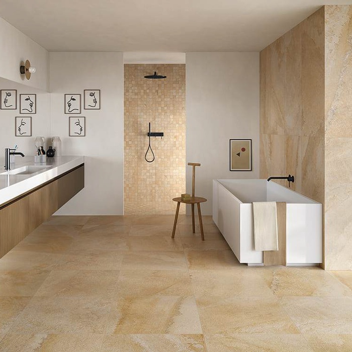 Badezimmer Feinsteinzeugplatten Mit Verschiedenen Formaten In Natursteinoptik