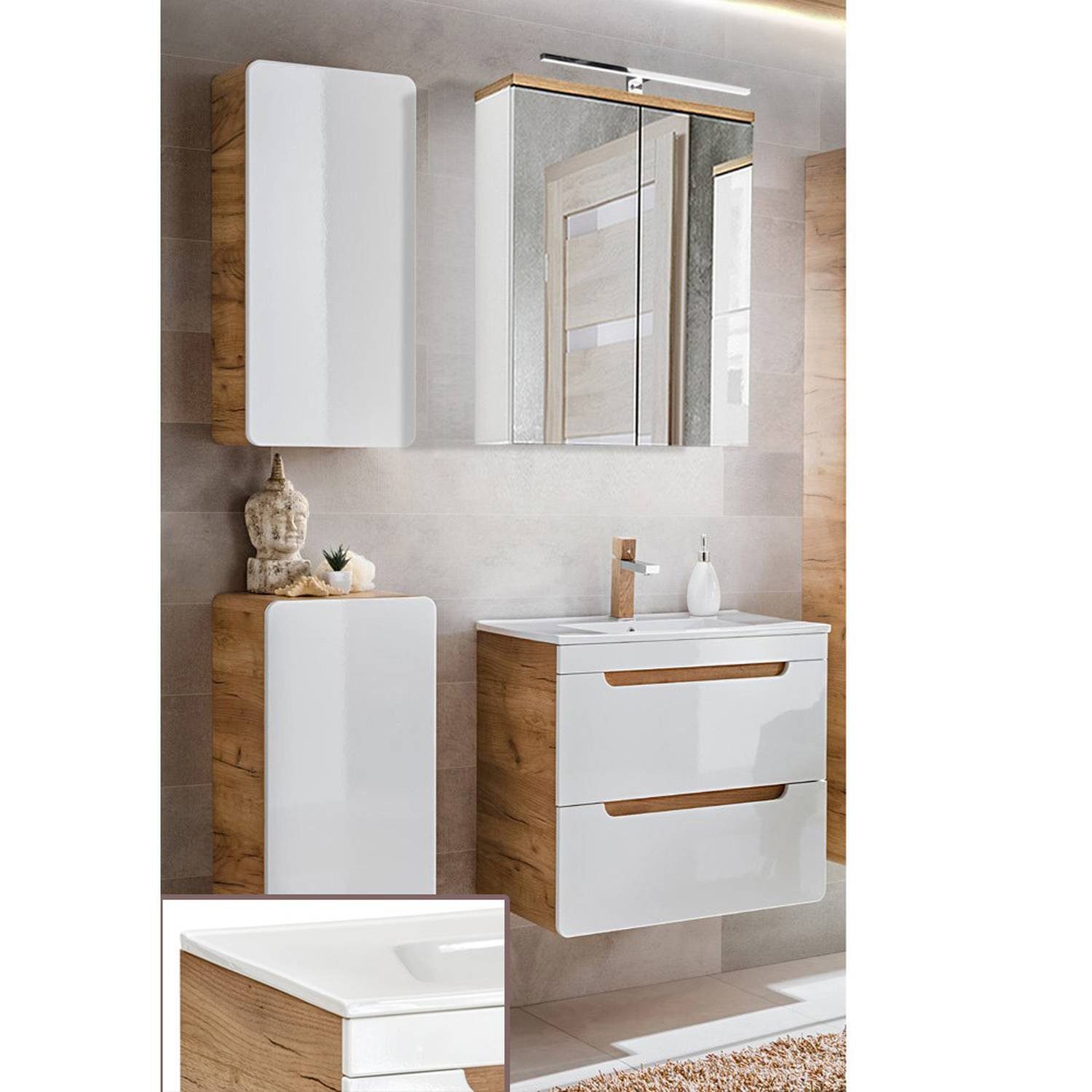 Badezimmermobel Set Modern In Weiss Holzdekor Wildeiche Misbonas 3 Teilig